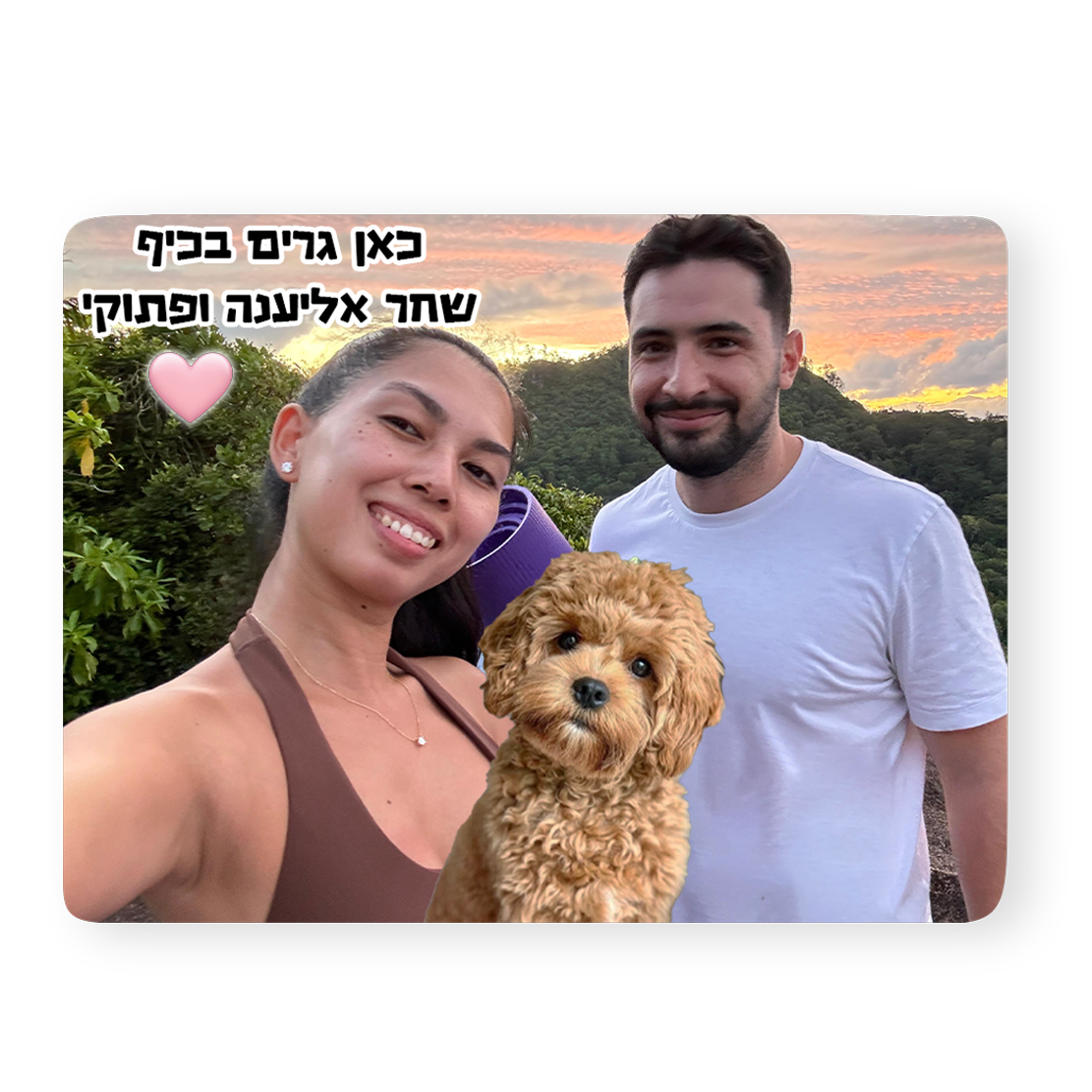 כן, אם זה מוצר שיש לו עיצוב, אתם יכולים לבחור פשוט בדגם בקלאסי, להעלות תמונה של האימוג'י / אלמנט שאתם רוצים ותמונה של הבן אדם / חיה ואנחנו נעצב את זה יפה! אם יש לכם הערות בקשות תרשמו את זה בהערות למעצב ואנחנו נתייחס ♥